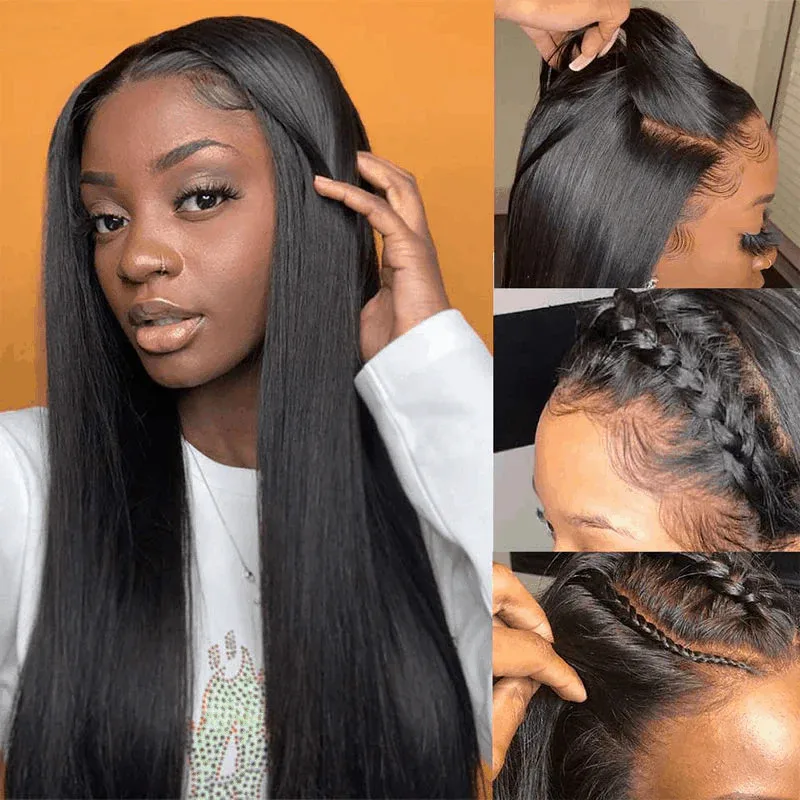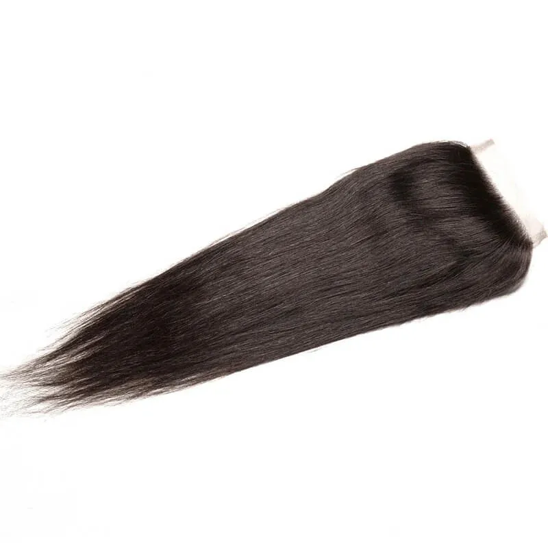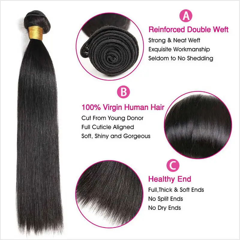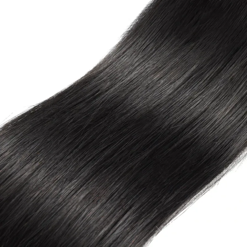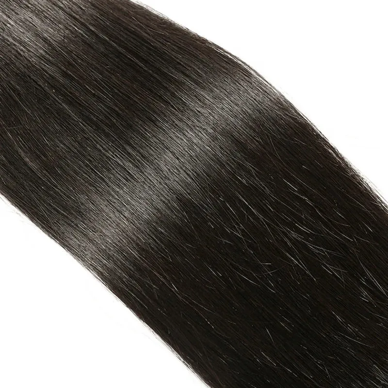 Straight Frontal 4x4 Lace Brazilian Human Hair Bundles With Closure Natural Black Extensions 26 28 30 Inch 3 Bundles Human Hair